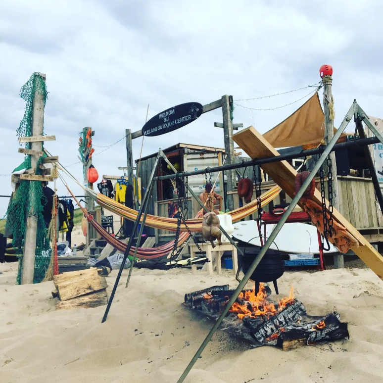 Met collega’s rond het vuur en zelf koken zonder keukenregels. Hout hakken, vuur opstoken en eten bereiden ondertussen zit je handen onder de as en ruik je naar rook. Niet netjes, wel samen aanpakken en precies daar ontstaat het echte teamgevoel.