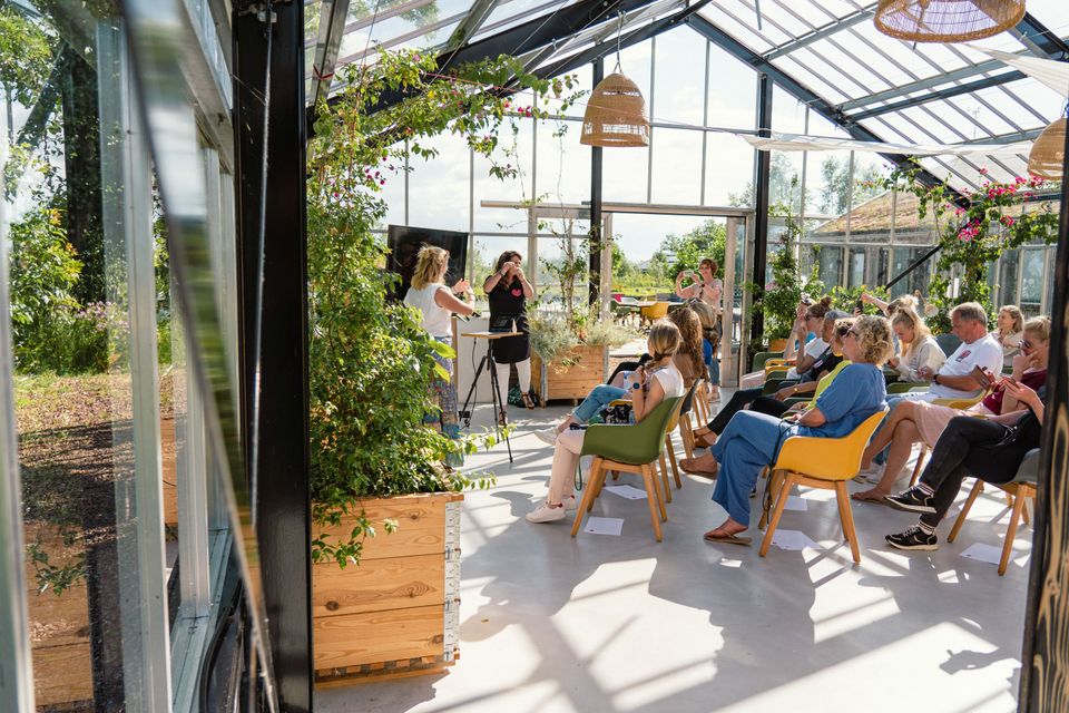 Deze plek net buiten Sneek geeft buiten werken meteen een andere sfeer. Je zit hier landelijk en rustig, met een glazen ruimte op een wijnboerderij en de mogelijkheid om tussendoor even door de wijngaard te lopen. Juist dat maakt het een sterke plek voor een sessie die net wat losser en frisser mag voelen